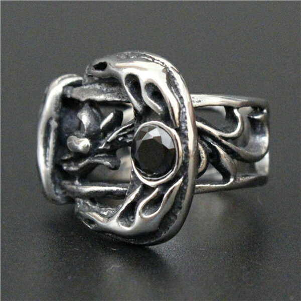 ブラックのジルコニアをベルトデザインにセットしたユニークなステンレスリング。